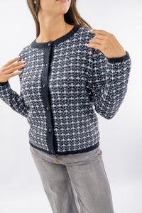 Ricercata e confortevole, questa maglia coreana si distingue per l’elegante motivo jacquard e la texture soffice. Il design essenziale viene valorizzato da una chiusura frontale con bottoni ricoperti e finiture a contrasto, per un tocco di stile contemporaneo. Perfetta per completare outfit informali e raffinati.