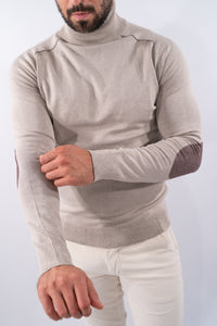 Dolcevita realizzato in misto viscosa. Un capo essenziale che unisce comfort e dettagli raffinati grazie alle eleganti toppe applicate sulle maniche. La lavorazione a costine su collo, polsini e fondo arricchiscono il design con un tocco moderno. Perfetto sia per look casual sia come sottogiacca. Vestibilità regular per uno stile versatile e contemporaneo.