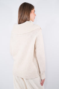 Maglia con collo a ciambella realizzata in misto lana. Un capo dal design avvolgente arricchito da motivo a rombi sul davanti. I filati lurex donano luce mentre il collo ampio e strutturato dona un tocco contemporaneo. Presenta costine su collo, polsi e fondo. Ideale per look raffinati dallo stile casual. Vestibilità morbida.