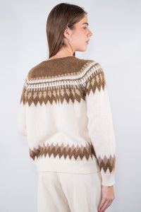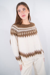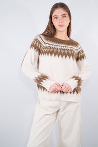 Maglia girocollo realizzata in misto lana. Un capo raffinato che grazie al motivo geometrico, realizzato con filati lurex, regala un sofisticato gioco di luci valorizzando la morbidezza della maglia. La linea leggermente morbida garantisce comfort e stile ad ogni look della stagione fredda. Vestibilità regolare.