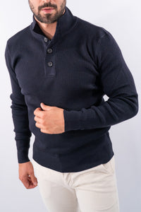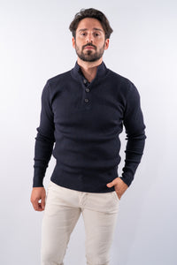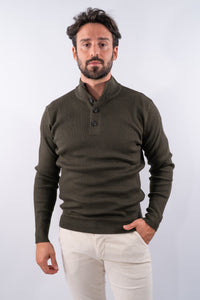 Maglia con collo a lupetto con bottoni realizzata a coste all over. La manica è a giro, polsi ed abbassamento sono a costine sottili. Asciutta la vestibilità con varietà di taglie e colori. Un capo essenziale nella forma ma eclettico nell' utilizzo.