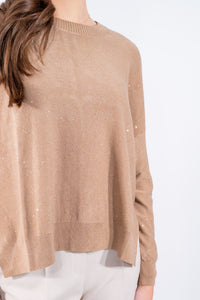 Maglia scatoletta luminosa con micro pailettes e spacchi laterali