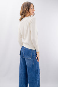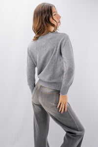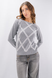 Maglioncino girocollo in misto lana e cashmere con rombi intarsiati