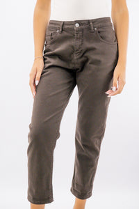 Pantaloni 5 tasche in twill stretch con fit dritto con x posteriore